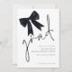 Modern Black Bow Script Grad Studenten sparar datumet. Tillgänglig digitalt och utskriven. Den här designen har ett informellt sätt att ställa in handskriftsskript i stil för huvudrubriken, graden och enkelt att anpassa typografin till högerna grund med dina detaljer. Med en illustration av snyggtens vattenfärgscoquette-båge.