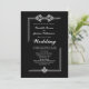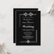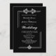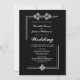 En modern inbjudan till svart bröllop med en snyggt silver faux glitter gräns och manustext. Denna inbjudan innehåller information om både ceremoni och mottagningsinformation.