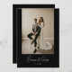 Modern inbjudan till fotoutökning och mottagning i svart Bröllop. Anpassa med ett favoritfoto, en brid och en groom-namn i elegantens skriptbokstäver och ditt bröllop-datum på framsidan och lägg till all ytterligare information om e-post och bröllopsmottagning på baksidan av kortet.