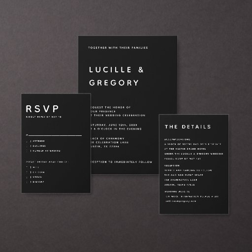 A Designer’s Tip for Your Suite: Pair this vertical black RSVP card with our horizontal Black invitations and white wax seals for a moody, sophisticated look that stands out in your guests' mailboxes.