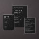 A Designer’s Pro-Tip: To maintain the "industrial-chic" look on this dark palette, we recommend keeping two spaces between the brackets [ ] when editing your meal options. This ensures your guests have plenty of room to initial their choices while keeping the bold, architectural alignment of the white-on-black design perfectly intact.
