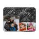 Skicka festliga semesterhälsningar med den här lycklig-familjens fotomagnet med tre av dina favoritfoton i en enkel samlingslayout. "BE Merry" visas som ett vitt textöverlägg i elegant-handskrivna skripttypografi. Finns som ett platta kort, ett vikt kort, vykort och en flexibel fotomagnet. Önska er alla God jul och Gott nytt år!