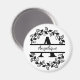 Modern Black Floral Wreath Split Monogram "A" Magnet