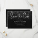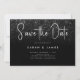 En enkel modern besparing av datumkortet. Anpassa denna minimalistiska svarta och vita design så att du får dina personliga uppgifter och meddelanden. Innehåller skriptkalligrafi och faux glitter-bildbakgrund.