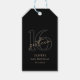Featuring a luxurious gold foil effect script "Thank You" and "Sixteen" set against a deep, matte black background, this minimalist design emphasizes clean lines and professional elegance. Perfect for attaching to gift bags, custom boxes, or party favors. Fully customizable — easily personalize with the celebrant's name and event date using the Zazzle design tool. Printed on high-quality, heavy cardstock with pre-punched holes, these tags coordinate flawlessly with our full black and gold luxury party suite for a polished 16th birthday experience.
