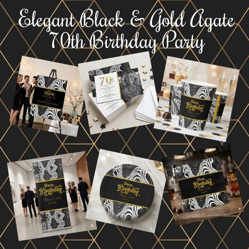 Elegant Black & Gold Agate 70th Birthday Party Designad av bimtal anass