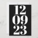 Klassiskt svart och vitt stil till Inbjudan med dina gäster till sparan av ditt bröllop-datum med denna minimalistiska typografiska utformning, med bröllop-datumet som en subtil bakgrund i numeriskt format som fyller sidan uppifrån till grund i blek grått, som upprepas på andra sidan i vitt på svart bakgrund. På framsidan överläggs den lilla förenklade svarta typografin ovanpå siffrorna med dina detaljer. Texten är lätt att personlig, inklusive de bakgrundsnummer som kommer att ändras samtidigt på båda sidor. Du kan också ändra text och bakgrund färger till bättre kostym i ditt bröllop färg-schema om du vill genom att anpassa ytterligare alternativ. Om du behöver hjälp med detta, meddela mig.