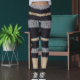 These modern black, grey, and beige striped leggings feature a knitted wool texture simulation that visually mimics cozy sweater fabric with a sleek, athletic fit. The neutral multicolor pattern blends woven stripes and textile depth for a sporty-chic look perfect for yoga, workouts, streetwear, or everyday lounging. This is a printed fabric simulation, not real wool—making it lightweight, breathable, and stretch-comfortable. Elevate your active style with effortless elegance—add yours to cart now.