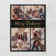 Elegant, Modern Black och Guld 5 Photo Collage Helgdag julfamiljs fotovykort. Den här sjutna, minimalistiska, viskösa 5 (5) fotokortmallen Julhälsningar ett söt-rutnätsfotokollage och säger "God jul"! Texten "God jul" hälsning är skriven i ett vackert handskript som snabbt byts ut mot svan i guld mot svart bakgrund i färg. På motsatt sida med din hälsning-meddelandemall med lite hjärtmotiv doodle och en fotomall. Ett hälsningskort för söt är ett underbart val för din familj och dina vänner under Julhelgen jul.