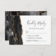 Det moderna djurutrymmeskortet i bröllop OSA på elegantens lämnat kant har en svart vattenfärgad agat gräns som trimmas med faux guld glitter. Rubriken "Kinely Reply" visas i handskriftsskript, med anpassade text nedanför i färgat grått-färgteckensnitt på vit bakgrund. Den omvända sidan har en matchande svartvit och guld agate-design.