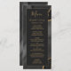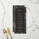 Den här eleganten har den moderna bröllop-menyn en vattenfärgssvart bakgrund med svart bakgrund som trimmas med guld faux glitter. Texten visas i handstil för elegant guld färgad och typsnitt för tryckplåt på en svartvit rektangel. Den agate-designen upprepas på motsatt sida.