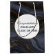 Grattis student-presentväska med en vacker bild av mörkens abstrakt, agate stone. Färg snurra i vågar. Färg är svart, blått grått med ett faux-guld-band som löper genom designen. Modern och trendiget.