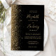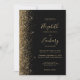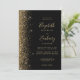 Den här elegantens lämnat kant har en modern bröllopsinbjudan i guld i glitter. Anpassadet kombinerar handskrift, rityta och kursivt typsnitt med blek guld färgad mot svart bakgrund. Den omvända sidan har en matchande design för svart och guld glitter.