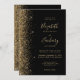 Modern Black Guld Faux Glitter Kant Bröllop Inbjudningar