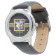 Utformningen har ett par isskridskor över en snöflingande vapensköld med svart och faux guld glitter bakgrund. Den här eleganten fungerar vintersportdesignen som en coola modern och unik handklocka med personlig för flickor.