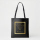 Denna moderna tote-väska har en svart och guld-geometrisk utformning med en diamant och ett anpassade namn vid grund.