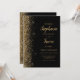 Den här elegantens lämnat kant har en modern bröllopsinbjudan i guld i glitter. Anpassadet kombinerar penselskriptet guld-färgad och sans serif typsnitt på en svart bakgrund. Den omvända sidan har en matchande design för svart och guld glitter.