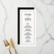 Ge dina gäster den här enkla menydesignen för elegant bröllop. Lägg till din egen speciella beröring till den moderna designen som har guld-manusskrivtypografi, inklusive långa svan-tecken, för ord "och", med kontrasterande formell svart text och samordning av guld gräns. Anpassa den med namn, datum och menyalternativ för bröllop. Kontakta mig om du behöver hjälp eller anpassningsbar.