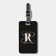 Den här snyggten har den moderna eleganten bagagetaggen med monogrammet ett guld-skript som initialt med ett fet vit inledning och namn överlagrad, på en svart bakgrund.