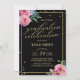 Modern Black & Guld Watercolor Blommigt Studenten Inbjudningar
