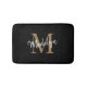 Modern Black Guld White Monogram Script Elegant Bath Mat. Anpassa enkelt det här moderna badmattet i eleganten med ditt anpassningsbar monogram och namn.