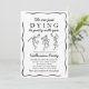 🎃 vi bara dör till Party med dig! 💀 få redo för en fullt av skrämsel, roligt och fantastiska kostymer! Den här moderna inbjudan från Halloween fest har ett krångligt, handritat skelett som dansar på en skokig svart bakgrund - perfektens blandning av läskigt och sött! 👻 🖤 om du kastar en hemlig husbash, en kostym tävling, eller en natt av eerie-cocktails med dina själar, så sätter inbjudan scenen i stil. Anpassa alla detaljer om party med din egen pooky twist. Kasta upp, kom upp och få redot att boggi med odödan! 🦇 🪦 🧛 ♀️