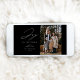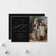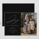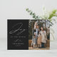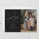 Modern helgdag-fotokort med frasen "Joy to the World" i elegant, vitt skript med svart bakgrund. Anpassa framsidan av kortet för helgdag av elegant med namn, år och lodrät.