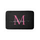 Den moderna svarta Magentan Shock rosa White Monogram Script Elegant Girly Bath Mat