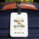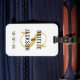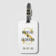Modern och elegant bagagemärke för ett nylott par på smekmånaden har en enkel och chic monogramdesign som kan vara personlig med bruden och brudgummen namn, det ursprungliga gifta efternamnet och bröllop-datumet accentuerat med hjärtan. Svartvit, och Vegas guld färg kan ändras.