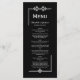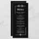 En modern svart bröllop-meny med snyggt silver faux glitter gräns och text med skript.