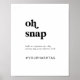 Modern Black Oh Snap Bröllop Hashtag-tecken Poster
