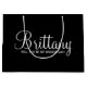 Modern Personlig Bridesmaid Frieri Gift Bag med personlig bridesmaias namn i vitt, modernt typsnitt stil med titel i vitt, modernt sans serif-typsnitt stil på svart bakgrund. Även perfekt för maid of honor, blomsterflicka med mera.