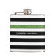 Anpassa denna moderna, svarta och vita vågrät vinylförpackad mönster-kolv med glatt grönt glitter-liknande rand genom att lägga till namn från vilken liten flicka som helst. Det här trendiget mönster är perfekt för chicens modeonista. Platt utskriven bild, INTE glitter.