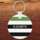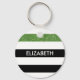Anpassa den moderna, svarta och vita ränderna mönster-nyckelkedjan med en glatt grönt glitter-liknande rand genom att lägga till namn för vilken liten flicka som helst. Det här trendiget mönster är perfekt för chicens modeonista. Platt utskriven bild, INTE glitter.