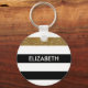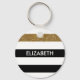 Anpassa denna moderna, svarta och vita nyckelkedja för ränder mönster med guld glitter rand genom att lägga till namn för vilken liten flicka som helst. Det här trendiget mönster är perfekt för chicens modeonista. Platt utskriven bild, INTE glitter.