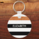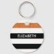 Anpassa den moderna, svarta och vita ränderna mönster-nyckelkedjan med en glatt orange glitter-liknande rand genom att lägga till namn för vilken liten flicka som helst. Det här trendiget mönster är perfekt för chicens modeonista. Platt utskriven bild, INTE glitter.