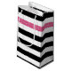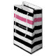 Anpassa den här moderna, breda vågrät, svartvit ränder, mönster-presentväska med en shock rosa-rand genom att lägga till namn från vilken liten flicka som helst. Det här trendiget är mönster som är grafiskt strimlad är perfekt för chicen mode. Platta utskrivna bilder, INTE faktiska glitter.