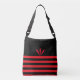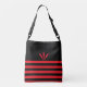 Snygg modern svart och röd rand och kardinalfjädrar Crossbody Bag. Modern Black and Red Tote bags.