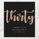 Minimalistisk märkning av svart 30års födelsedag och ro guld vin i flaska i modern, chic och elegant i stil. Med åldern "trettio" i glatt ro guld. Anpassa med ålder, namn och födelseår.