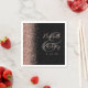 Den lämnat kant i denna elegant moderna bröllop-servetter har en ro faux glitter-design. Anpassadet kombinerar handskrift och typsnitt i blek ro färgad över ett stort grått-ampersand på en svart bakgrund.