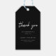 Modern Black Script Graduation Party Thank You Gift Tags. Personalize with a custom message, graduate's name, year of graduation, and the name of his/her high school, college, or university.