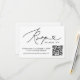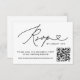 Den moderna och minimala svarskortsdesignen för svart och vitt bröllop har anpassningsbarnas QR-kod och bröllop webbplats så att gästerna kan svara på online i stället för att skicka tillbaka ett kort. Svartvit text och vit bakgrund färg kan uppdateras för att samordnas med ditt bröllop färg-program.