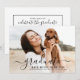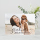 Två inbjudningar på studentfesten innehåller ett fotomeddelande på framsidan med svart, modernt och minimalistiskt skript för eleganten "student" och monogramdesign. Kortets baksida innehåller inbjudningsinformation från studenten firande som kan anpassas helt och hållet för din speciella studentfest-händelse. Observera att den vita bakgrunden färg på baksidan kan redigeras till ett annat färg via Anpassa.