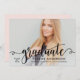 Snyggt och elegant studenten annonskort och partiinbjudan innehåller ett överordnat foto med "student"-skriptövertäckning. Anpassa den moderna anpassningsbarnas text med namn, skola och klassår. Denna dubbelsidiga kortutformning innehåller en formulering om inbjudan till studentfest på baksidan. Det söt rosa och svart färg-systemet kan anpassas så att det kan samordnas med foto eller party färger.
