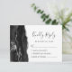 Det moderna djurutrymmeskortet i bröllop OSA på elegantens lämnat kant har en svart vattenfärgad agat gräns som trimmas med faux silver glitter. Rubriken "Kinely Reply" visas i handskriftsskript, med anpassade text nedanför i färgat grått-färgteckensnitt på vit bakgrund. Den omvända sidan har en matchande svartvit och silver agate-design.