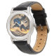 Den här moderna designen har en svart hingst som tar sig in i en öken.