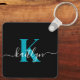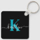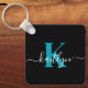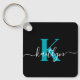 Modern Black Teal Script Monogram Nyckelring