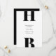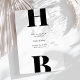Enkel, men en påstående: Contemporary Spara datumsymbolen med fet typografi och monogram i svartvitt. Minimal elegant på framsidan för att informera gästerna om det kommande bröllop. Den svarta bakgrunden på det här Spara datumkortet ger kontrasten. Använda eller radera den extra textraden på grund bakåt. All färg kan anpassas så att den passar ditt bröllop-tema om du inte vill gå till svartvitt.