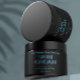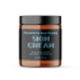 En modern etikett för svart kosmetika i burk med blå text och grått med plats för ditt företag namn, social medieferens, webbplats, utskick av adress och mobilt nummer.