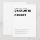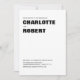 En snyggt vit bröllopsinbjudan med modern svart text.